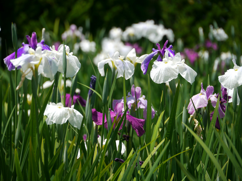 様々な種類の花菖蒲が一面に植えられていて、エリアによってはその品種紹介の札も色々と見られました。